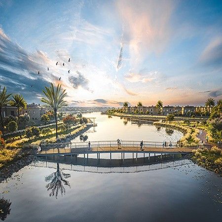 The community features elegantly designed villas ranging from 3 to 6 bedrooms, with open floor plans, spacious living areas, modern kitchens, and terraces overlooking scenic lakes and landscaped gardens.