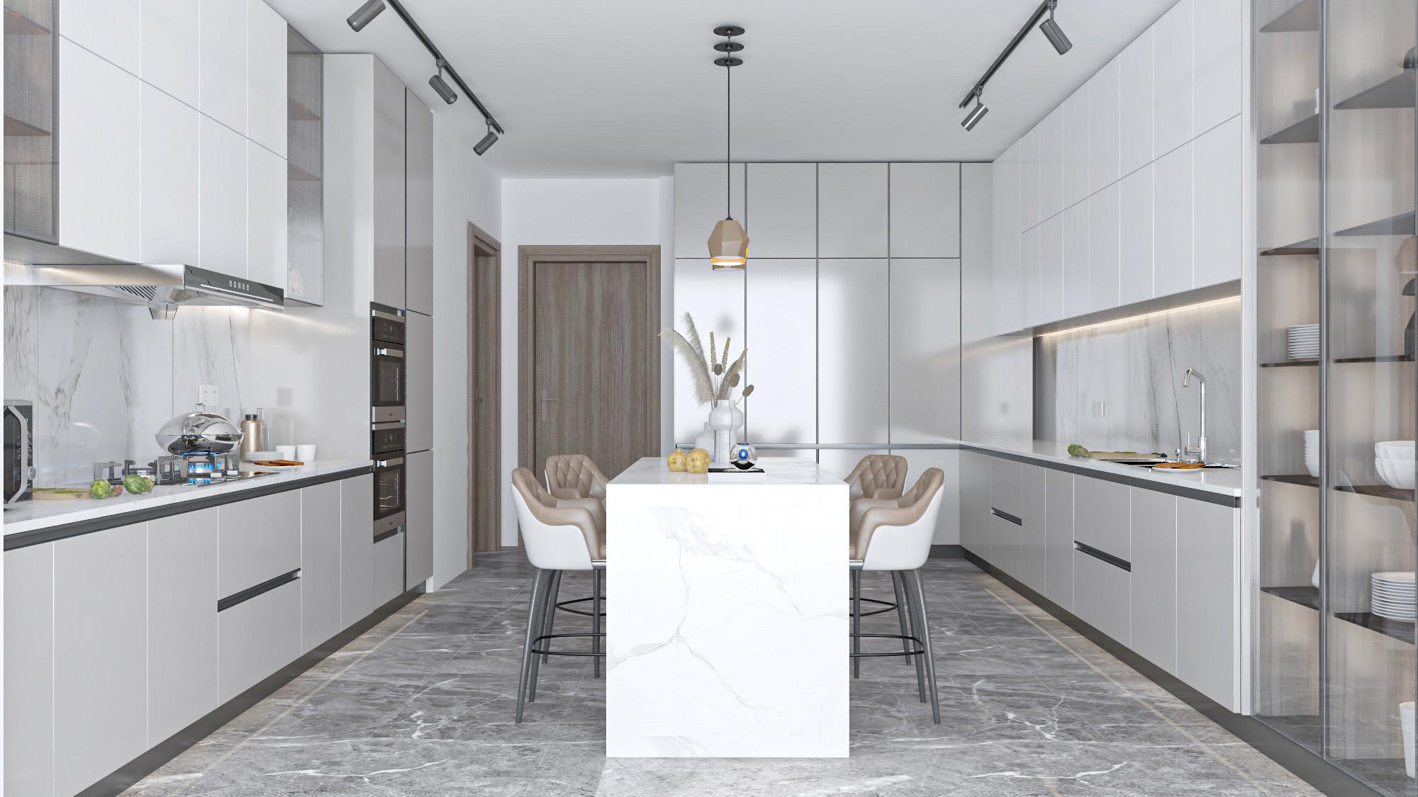- Gourmet show kitchen + functional work kitchen